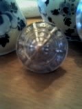 zoutstrooier (denk ik)heeft zilveren stop met gaatjes erin en een soort van bonbonniere of tabakspot met zilveren deksel