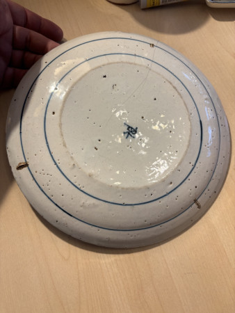 A Alexis Schultz Assiette bleu sombre 0 Voorwerp Merk Plate white and blue with vase and flowers in a chinese style Vraag IS is from delft and which period is it ? Collectie publiekscollectie