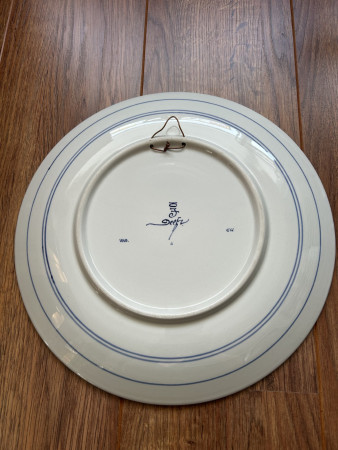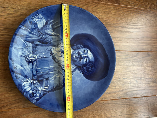 Het is een rond bord met aan de achterkant een haakje zodat je het kan ophangen. Afbeelding van Rembrandt van Rijn. Het is al heel lang in mijn familie, waarvan een deel uit Delft komt. Mij is niet bekend of iemand daarvan ooit werkte bij De Koninklijke Porceleyne Fles.