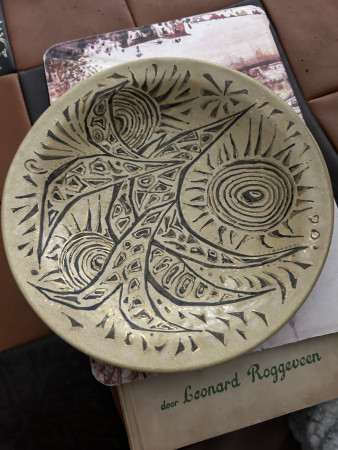 A Annetr Een experimenteel bord porseleyne fles 0 Voorwerp Merk Decoratie Met moderne zonnen of bloemen bruin beige Afmetingen Circa 15 cm Collectie publiekscollectie