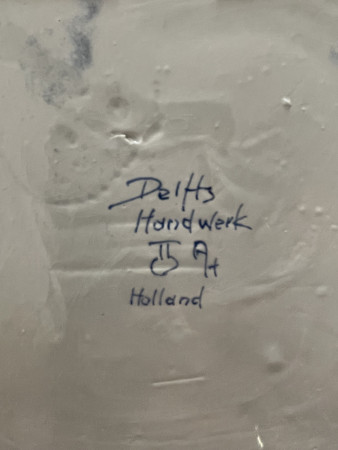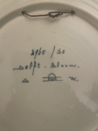 Het bord op de vierde foto ( niet helemaal duidelijk welk bord bij welke achterzijde hoort ) is van plateelbakkerij Plazuid uit Gouda, gemaakt in 1941 en geschilderd door Karel van der Heuvel die er werkte va, 1918 to 1964.