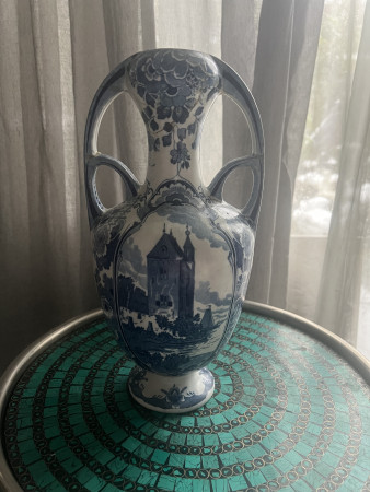 B BarthdeBoer Een bord en een vaas 0 Voorwerp Merk Decoratie Rond bordjes afbeelding van een kasteel, ook de vaas heeft afbeeldingen van kastelen Vraag Is het Delfsblaauw en hoe oud kan dit zijn? Collectie publiekscollectie