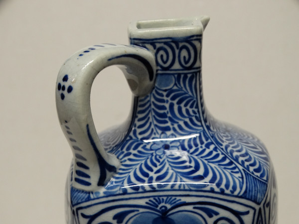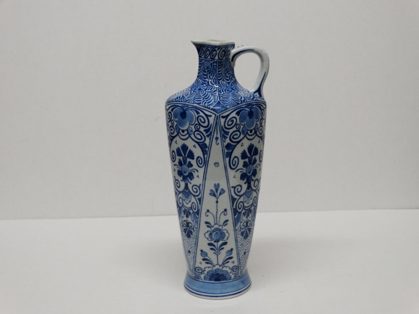 Ronde voet,wat van 8 kant naar boven in 4 kant overgaat.met 1 oor en schenktuitje.