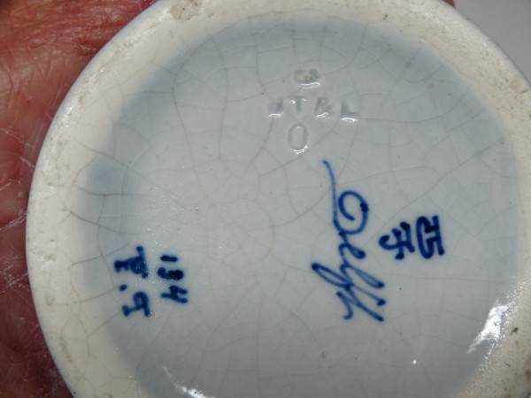 De jaarcode lijkt op een F voor 1884 maar zou ook een T of een R kunnen zijn? Zie: https://royaldelft.com/wp-content/uploads/2021/05/Royal-Delft-Jaarcodes…