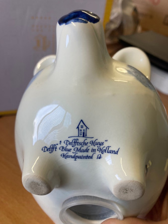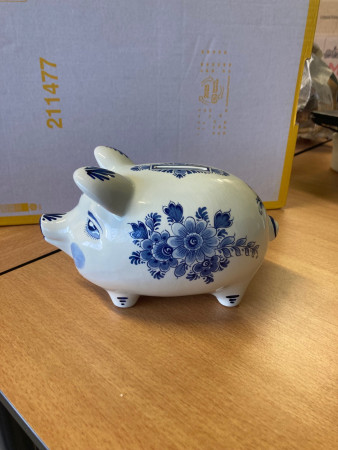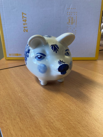 C CB Spaarvarken 1 Voorwerp Merk Decoratie Een spaarvarken Vraag Is dit echt delfts blauw? Afmetingen Hoogte 12 cm Breedte 21 cm Diepte 11 cm Collectie publiekscollectie