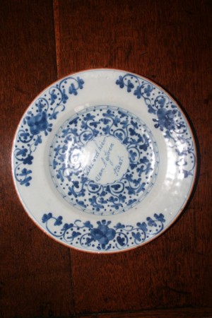 Op basis van de foto lijkt het hier te gaan om een Delfts bord uit de late achttiende eeuw. (Doordat in de late negentiende en begin twintigste eeuw in Noord-Frankrijk ook goede imitaties van dit type borden geproduceerd zijn, blijft het vaststellen van de datering moeilijk zonder het bord in werkelijkheid te hebben gezien.)