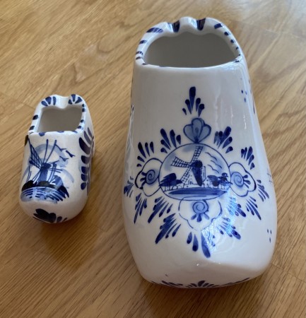 Wall mounted porcelain clog and miniature clog. Both hand painted