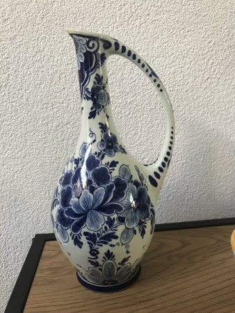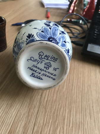 Kan met bloemmotief, gemaakt door Regina fabriek, WB/firma van der Want & Barras.