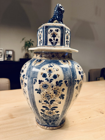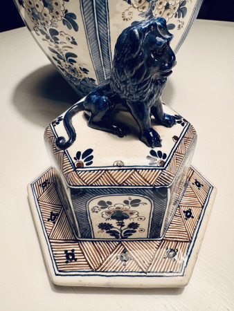 Oorspronkelijk werden Delftse vazen geïnspireerd door Chinees porselein, waar vaak een 'Fo-hond' (een mythologische leeuw) op de deksel stond. Nederlandse pottenbakkers vertaalden dit naar de voor hen bekendere Europese leeuw.
