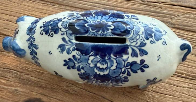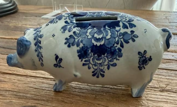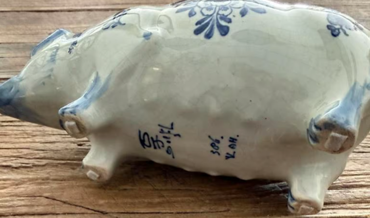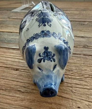 Beschreven als "Extreem zeldzaam spaarvarken van De Porceleyne Fles. Voor oorlogs en antiek! Waarschijnlijk veel stuk geslagen tijdens de oorlog ivm geldnood! Een unieke kans voor de verzamelaar!"