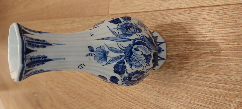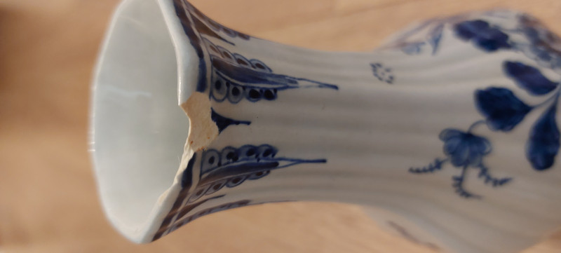 Thank you so much! Its pretty cool that its actually genuine Delft, and I'm definitely keeping it despite the large chip. I found it in a dumpster, I guess someone probably trashed it due to that.