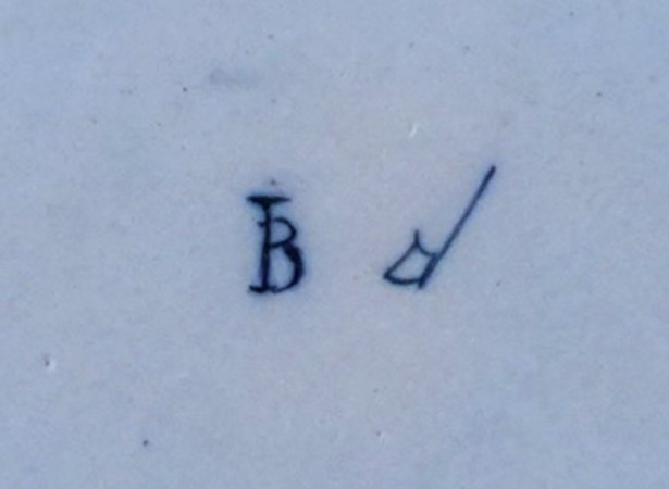 Dit lijkt me een mooie "slabak" van de Porcelijne Bijl . Afdrukken van "Proenen" ga je hier niet op vinden, dit goed werd in kokers gebakken op pennen . De sporen zie je aan de achterzijde en noemt men "moeten" ..