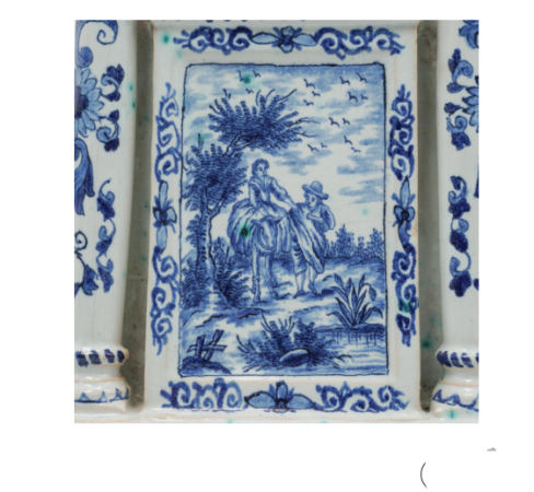 I wonder if this case is as old as the French clock mechanism it contains, which appears to be late 18th century. I also would like opinions on whether it is authentic Delftware. The marks consist only of two letters (D.X.) and a number (10).