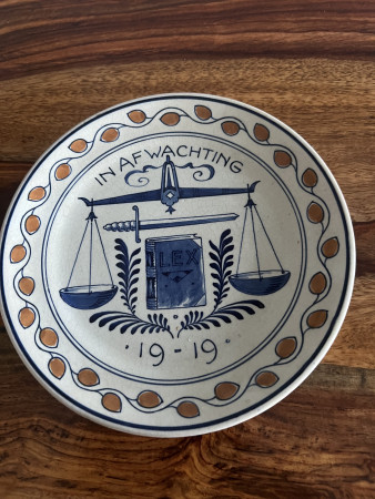Ontwerp van Leon Senf-het bord herdenkt het einde van de eerste wereldoorlog,met de tekst “IN AFWACHTING” en het jaartal 1919