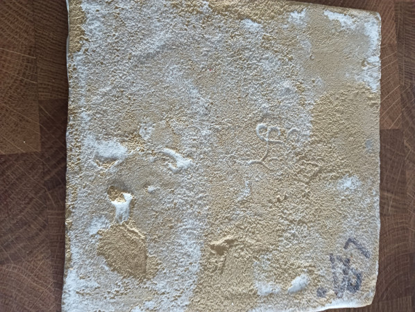 On the reverse a faint engraved mark and black initials in one corner.