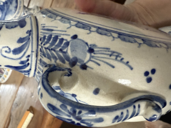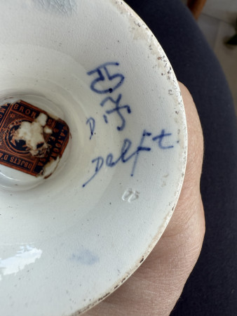 Mooie delftsblauw geschilderde platte vaas. Met een afbeelding van een schip. Ik heb ook een met een afbeelding van een molen.