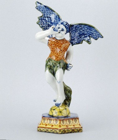 Veel variaties en uitvoeringen op het thema van de bazuinengel zijn in Delfts aardewerk aan te wijzen. De soms grillig uitgevoerde voetstukken met een sokkel van drie voluutvormige pootjes dragen ook engelen met geschubde vleugels. Van andere goden werden tijdens deze productieperiode van Pennis eveneens plastiekjes op de markt gebracht.