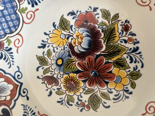 L Liesbeth Wandbord 0 Voorwerp Merk Decoratie Delfts aardewerk bont met bloemen Afmetingen 15cm doorsnede Collectie publiekscollectie