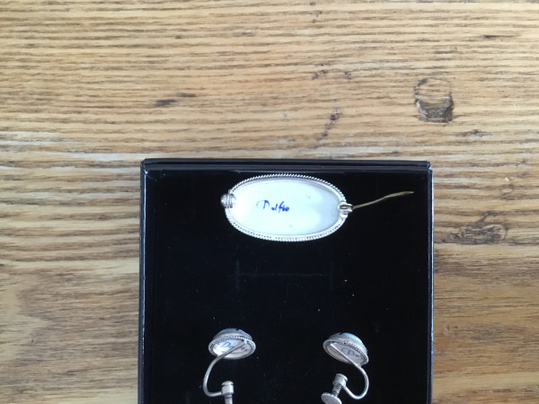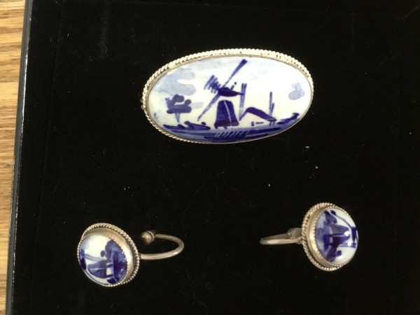 L limerick1234 Jewelry 0 Voorwerp Merk Materiaal Decoratie Broche and earrings with delft signed on back Vraag Is this jewelry the real thing, or a fake? Thanks Afmetingen 1.5 inch broche and .5 inch earrings Collectie publiekscollectie