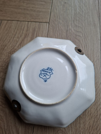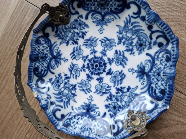 L Linda Van Schaik Schaaltje voor bonbons met zilveren hengsel 0 Voorwerp Merk Decoratie Schaaltje voor bonbons.De rand is ietsje beschadigd. Vraag Uit welke periode dateert dit schaaltje? Afmetingen Van hengsel nr hengsel 15 cm Collectie publiekscollectie