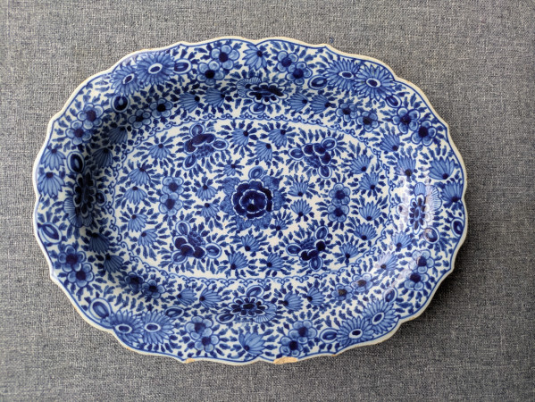 Klein ovaal bord of schaal. Met bloemmotief.