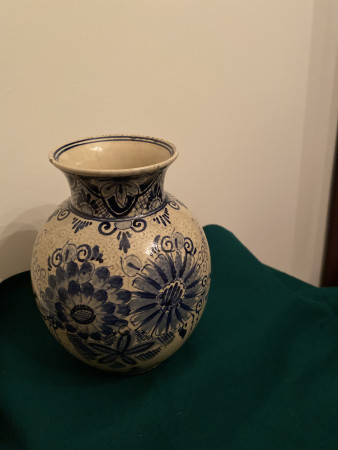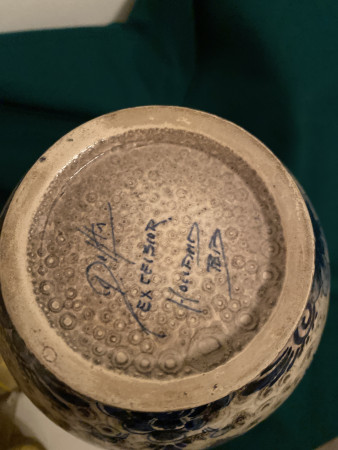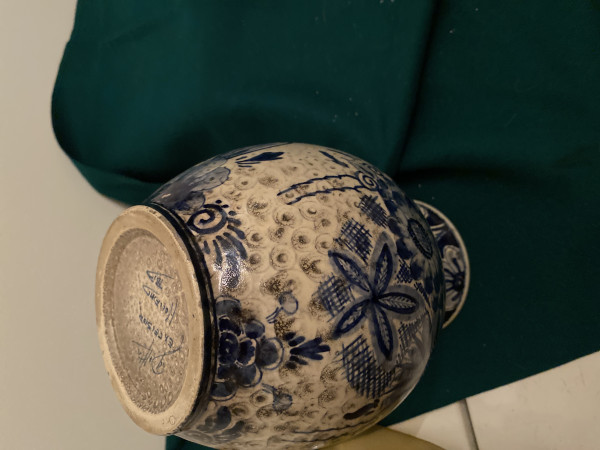 M M Bovenberg Vaas 33 cm hoog 0 Voorwerp Merk Decoratie Vaas met ronde hals en bloemen Vraag Is dit antiek of hoe oud Collectie publiekscollectie