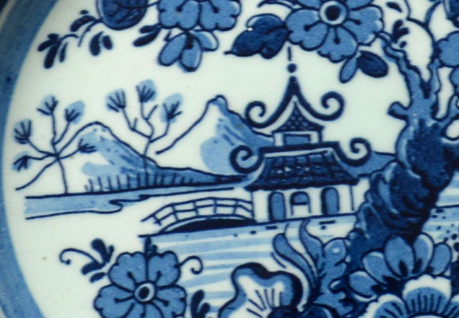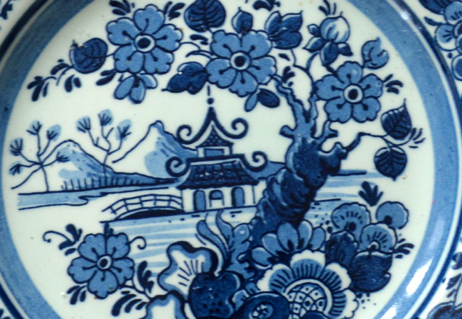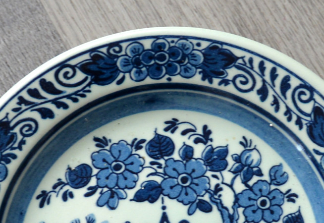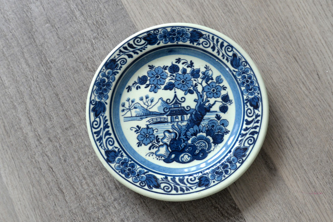 Ik zie het is niet delft merk . Er is Royal Goedewaagen. Het style Earthenware " Blue Delft " Ik denk het is Hand Work en Hand Painted Plate. Onderverp is oriental : Pagoda in Garden.
