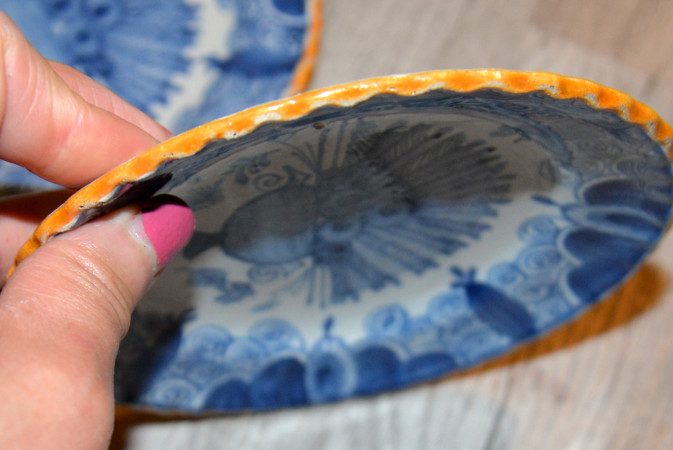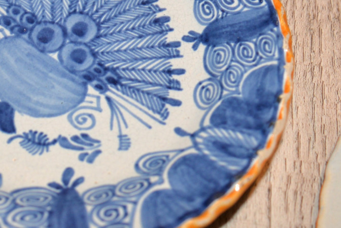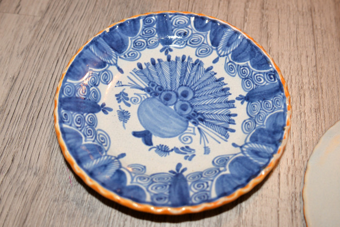 Kleine setje Delfts Blauwe pauwenbord. Knollenbord . Het meterial geen porcelan maar aardewerk -gemaakt gele klei.