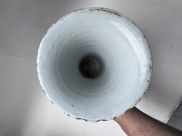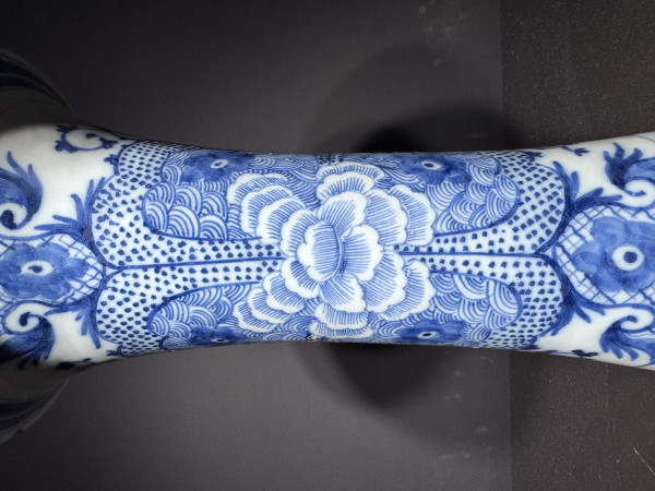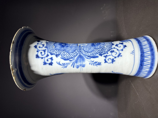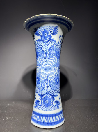 Welke periode is het? En is het Delfts Chinoiserie of toch Chinees? Trompetvaas/bekervaas/cornet vaas?
