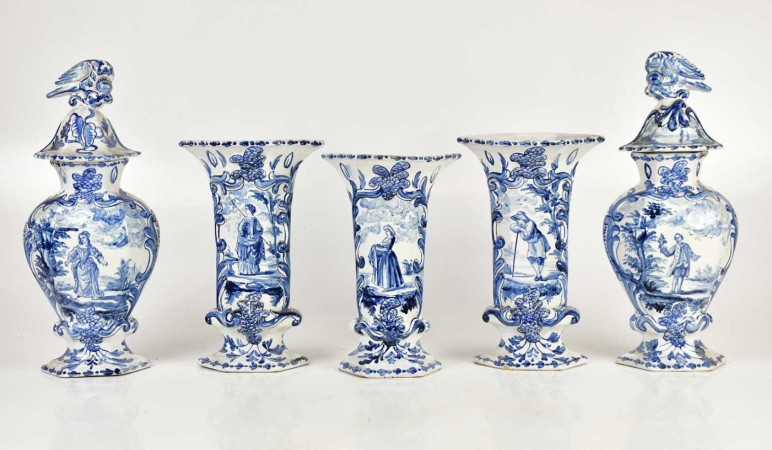 5 Piece Garniture with pastoral decoration and rococo details
