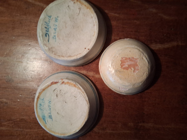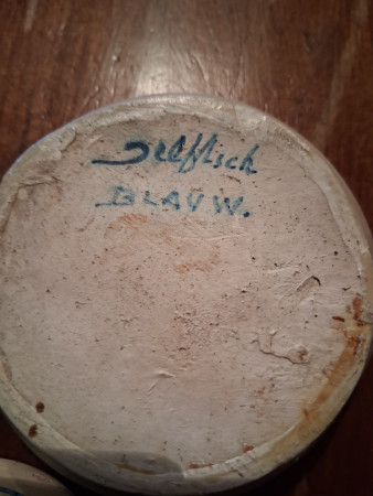 Hand gevormd/gedraaid, rode klei,niet of slecht geglazuurd. Merkwaardig merk.