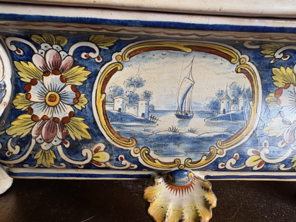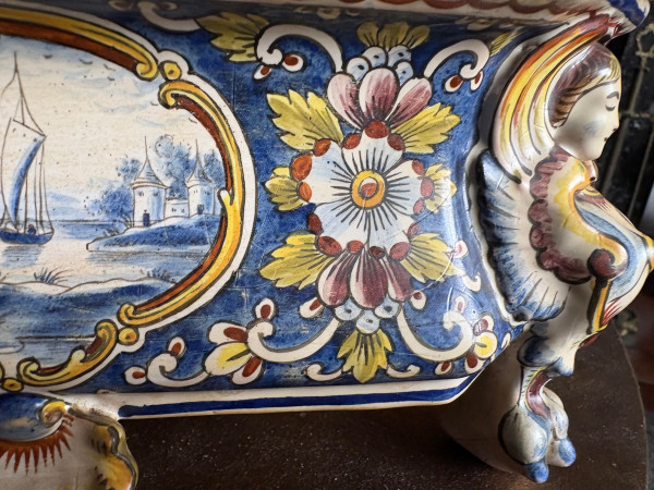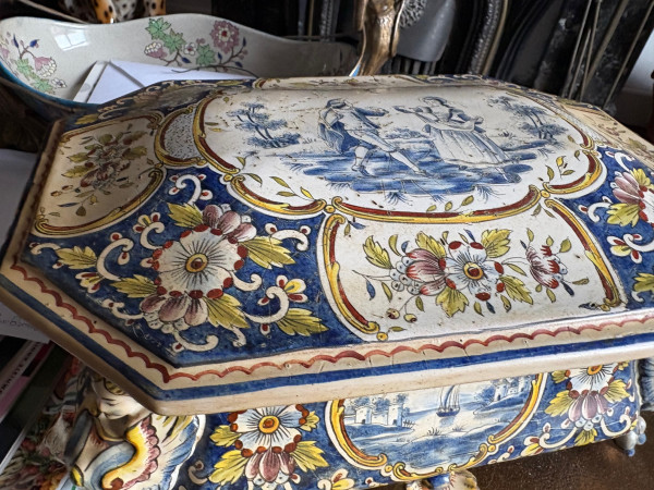 P peter78 box met deksel 0 Voorwerp Merk Decoratie mooie gedecoreerde doos met deksel Vraag is dit delfts of noord franse kopie? Afmetingen ongeveer 40 op 25 cm Collectie publiekscollectie
