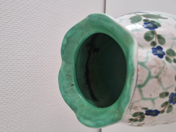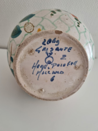 R RickvD Vaas 0 Voorwerp Merk Decoratie Vaas in bloemen decoratie Vraag Welk plateelbakkerij heeft dit gemaakt en wanneer ongeveer? Afmetingen 16cm breed 21 cm hoog Collectie publiekscollectie