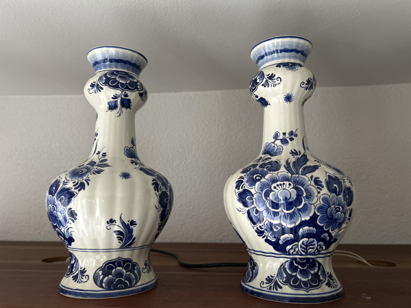 S Simons Joep Knobbel vazen set 1 Voorwerp Merk Decoratie Set van 2 knobbel vazen Vraag Is dit een echt merk of een nep delfsblauw Afmetingen 29 cm hoog Collectie publiekscollectie