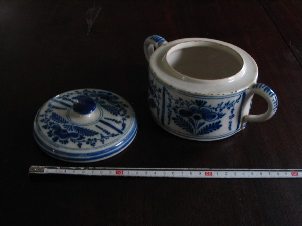 Om dit stuk te kunnen beoordelen is het van belang om ook een foto van de onderkant te hebben. Het is van belang om te weten of er een merk staat in het deksel of op de onderkant van deze boterpot. Daarbij is de foto erg donker. Zou u meer informatie kunnen uploaden? De redactie wacht uw reactie af.