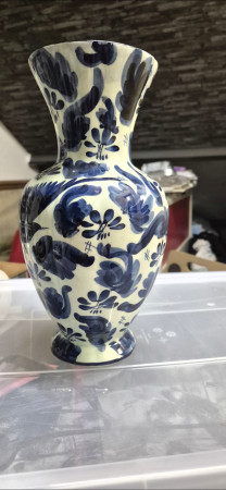 Wafel-/rasterstructuur in het gietspoor → typisch voor de Quaregnon-productie in de bloeiperiode van de fabriek. Het schilderwerk is stevig, vol penseel, en minder strak dan latere jaren-70 stukken. Glazuurkleur (licht crèmekleurige ondergrond) wijst op vroegere periode, want vanaf ca. eind jaren 60 werd het glazuur witter en gladder.