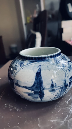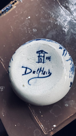 Dit is gemaakt bij Plateelbakkerij Zuid-Holland ( Plazuid) in de periode 1895 -1915. Geschilderd door Hendrik Adrianus Houdijk die er werkte van 1898 tot 1905 en opnieuw van 1912 tot na 1915 ( onduidelijk).
