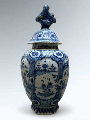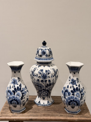 Kleine setje Delfts Blauwe pauwenbord. Knollenbord
