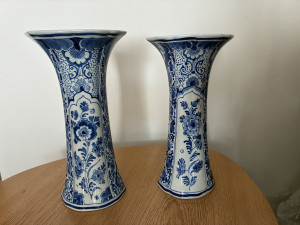 tableau van 8 delfts blauwe tegels in een eiken omlijsting