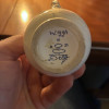 The mark represents a potter's wheel with the word/letters OUD above it and below the word Delft. Before 1968 the mark was handpainted en often included the initials of the painter and/or the letters that are probably the year of production. From 1968 the factory used a printed mark.