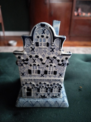 Het huisje is een miniatuur van een historisch pand uit Amsterdam met de tekst "IN DE ROOKENDE MOOR". Dit was oorspronkelijk een tabakswinkel/uithangbord. In de 19e eeuw maakte De Porceleyne Fles deze huisjes vaak als wierookbranders: je plaatste een geurkegeltje binnenin, en de rook kwam dan sfeervol uit de schoorsteen (vandaar de toepasselijke naam op de gevel).
