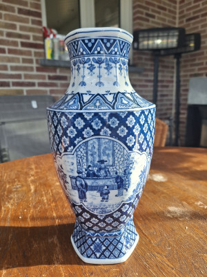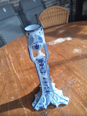 Bedankt voor de toelichting, ik veronderstel dat deze vaas een geschenk was bij het huwelijk van mijn ouders (1949). Ik heb nog enkele oudere stukken in Delfts blauw. Dit zijn familie-erfstukken waarvan ik graag de ouderdom van wil weten. Zie de kandelaar (wat ik veronderstel) die op deze site staat.