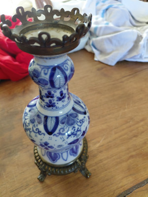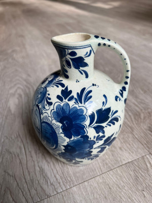 Dit is gemaakt door Plateelbakkerij Zuid-Holland, ook Plazuid enaamd. Het kenmerk is het lazaruspoortje. Helaas dus geen authentiek Delft maar uit Gouda. Waarschijnlijk jaren 1950-1960.