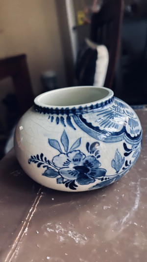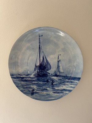 Dit is gemaakt bij Plateelbakkerij Zuid-Holland ( Plazuid) in de periode 1895 -1915. Geschilderd door Hendrik Adrianus Houdijk die er werkte van 1898 tot 1905 en opnieuw van 1912 tot na 1915 ( onduidelijk).