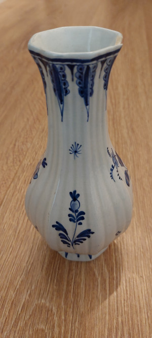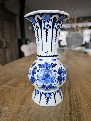Unfortunately, this one is also not authentic Delft. This was made by Goedewaagen from Gouda (later moved to Nieuw-Buinen). In 1910, the factory, then led by Aart Goedewaagen, received the right to carry the designation "koninklijk". In 1982, the factory went bankrupt and was no longer allowed to use 'koninklijk,' it became Royal Goedewaagen. Your vase will date from somewhere in the middle, presumably between 1950-1970.