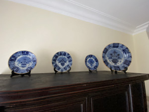Jan Theunis Dextra genuine plate. Made as a copy of Chinese plates. Identical plates were also produced by De Metaale Pot and De Witte Starre in sizes from 22 to 40 centimetres