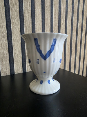 Kastvaas met deksel. Merkteken B:P Visser met bungelende vis aan z'n hengel